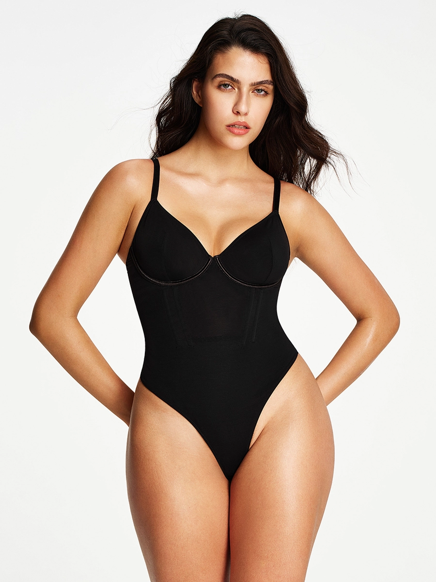 Seamless Deep V Underwire Cami Mid-Thigh Bodysuit