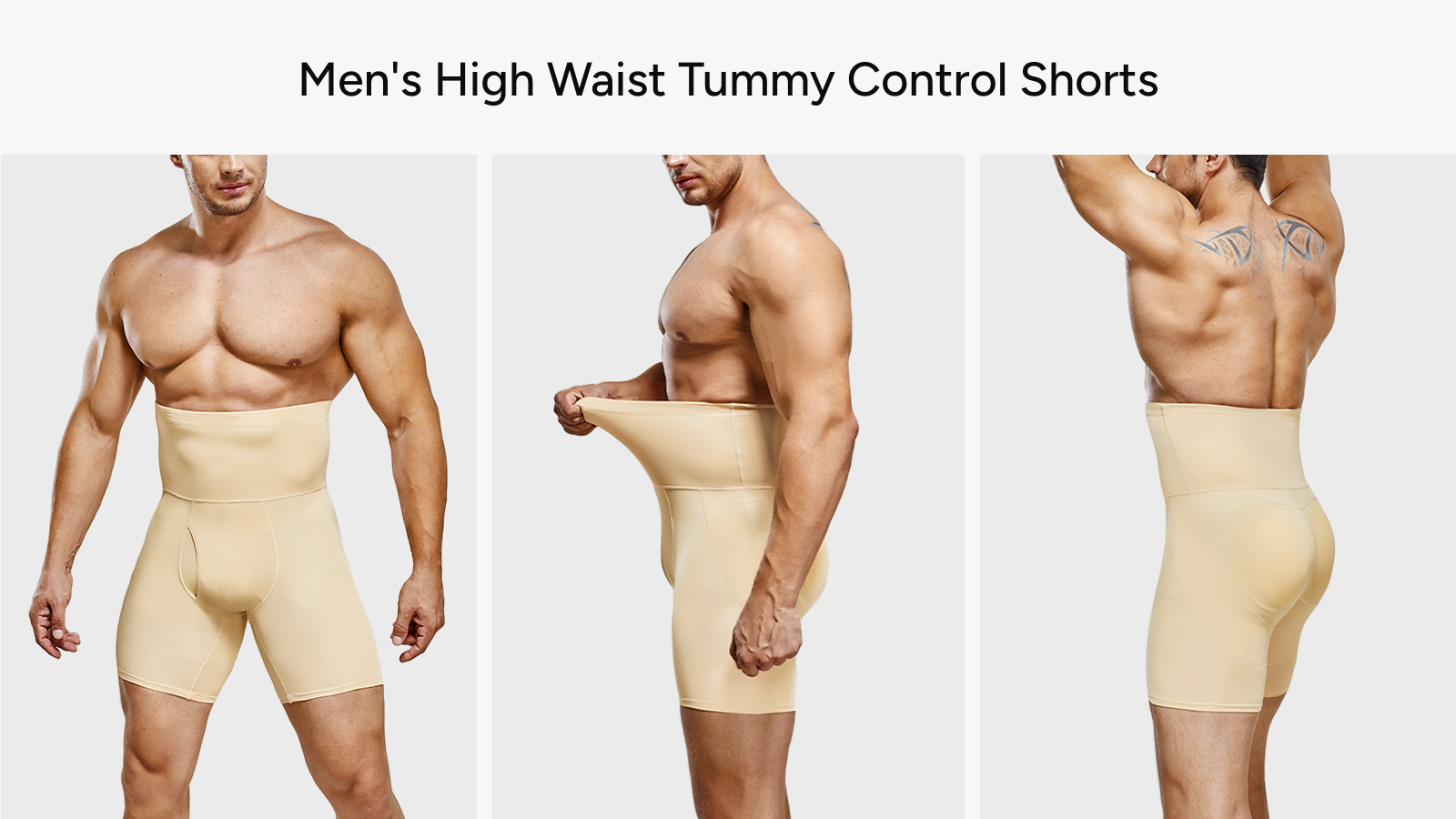 Nebility men's shaping shorts high waisted are designed to meet the practical needs of smart body shaping, making them easy to wear and use. They feature a convenient crotch opening design, greatly enhancing comfort and ease of use.